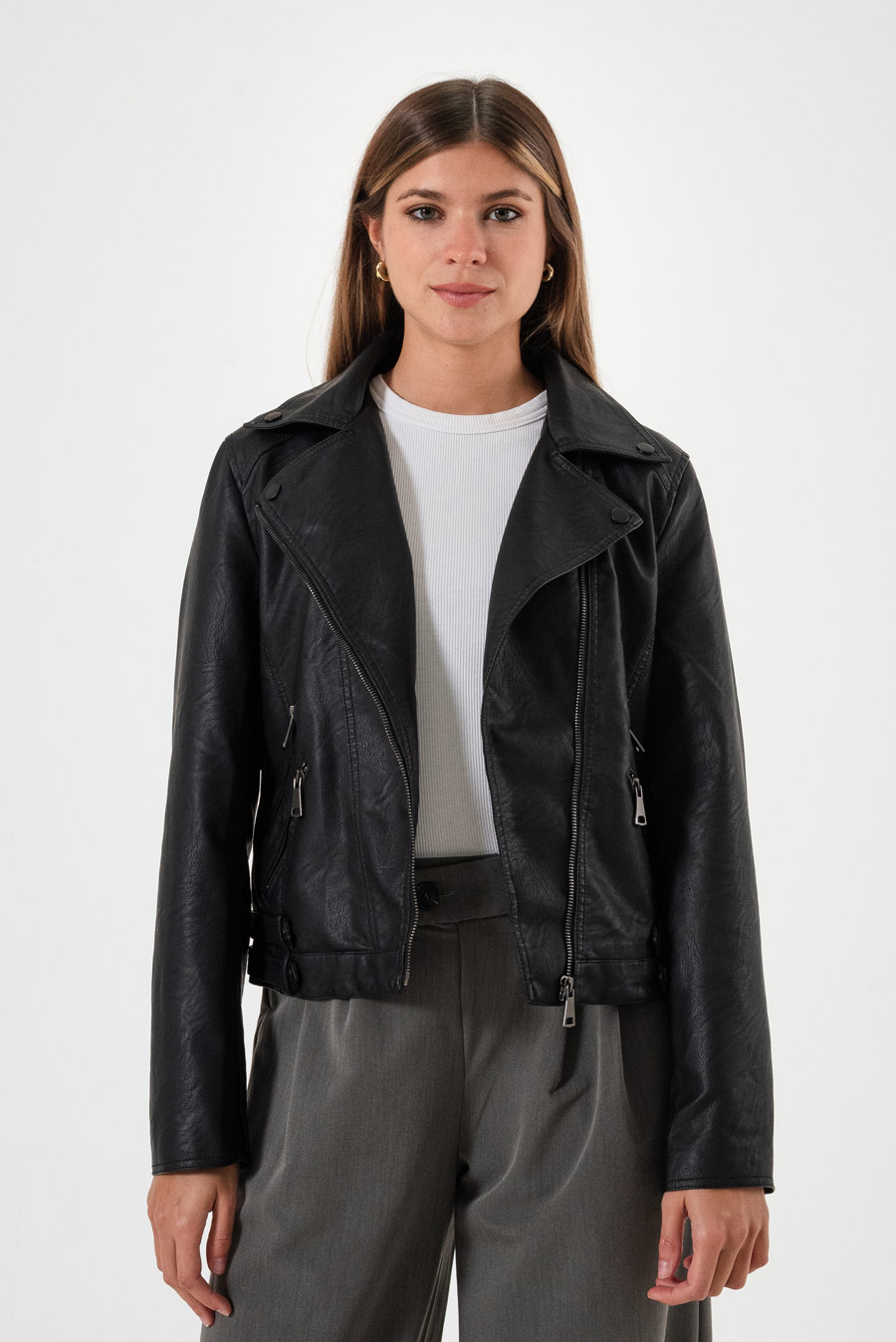 Campera Biker Leather Zippers