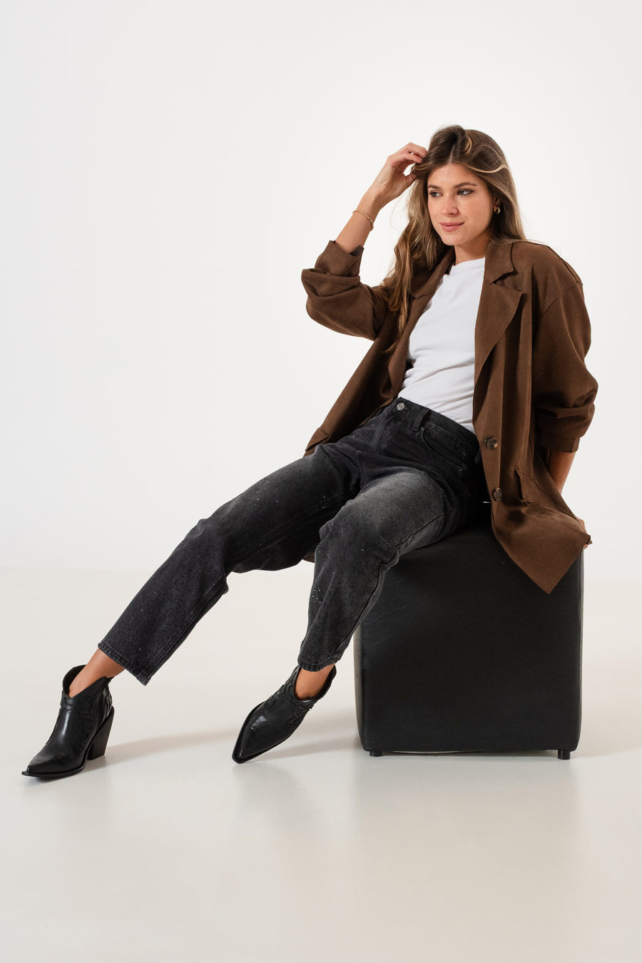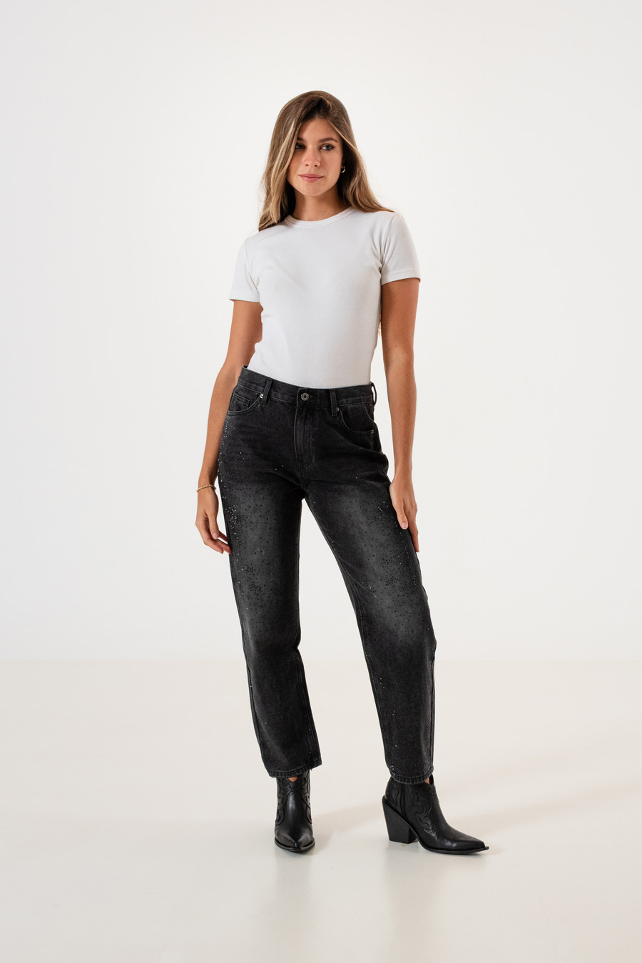 Material: Tiro alto / Mom fit / Rigido / Lavado localizado