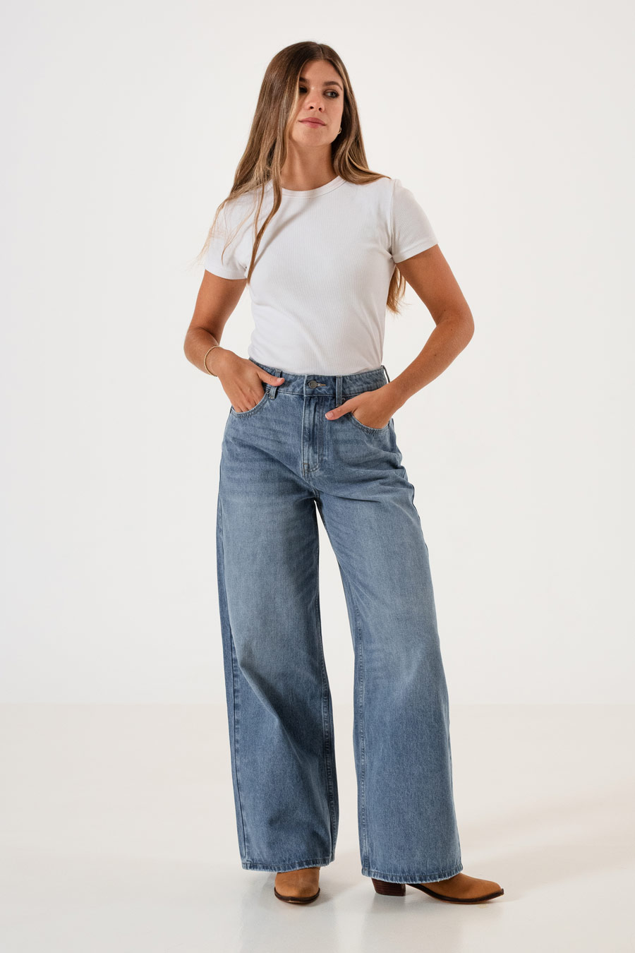 Material: Tiro alto / Wide leg / Rigido