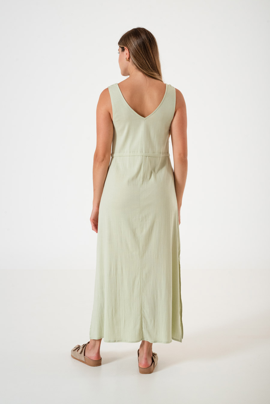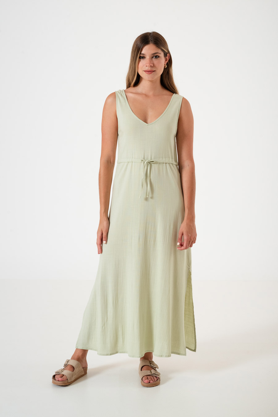 Vestido V con tajo y lazo Sunset